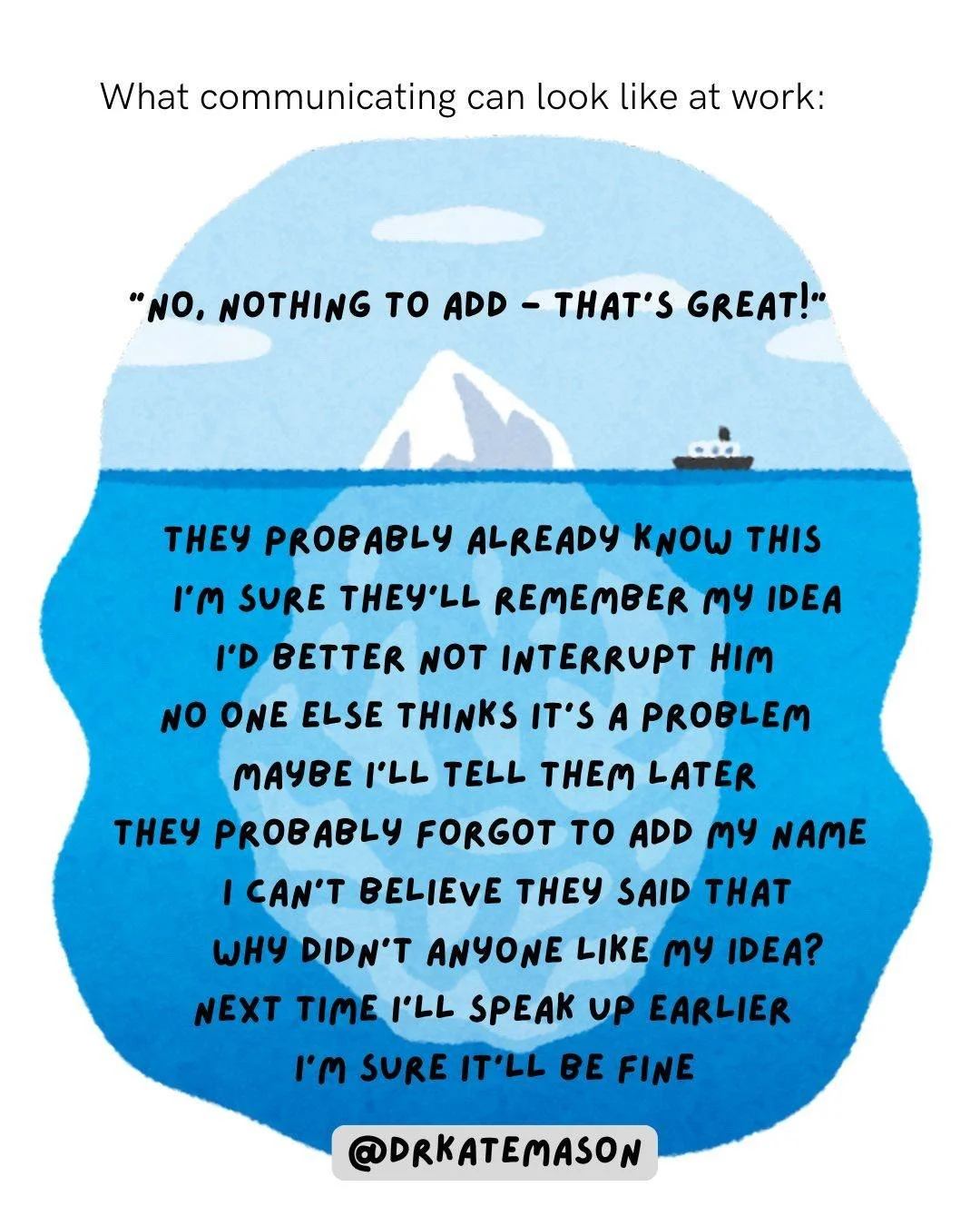 The voices of self-doubt can be so loud, but usually if you're paying attention, the thing you want to say is likely really valuable to others. Next time you hear one of these, think about how speaking up might benefit the team, the project, or yourself.